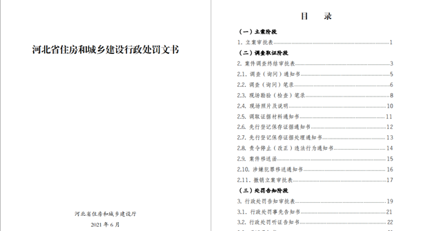 為適應行政處罰信息化建設,提升行政執法效能,結合河北省住房城鄉建設綜合執法信息管理平臺網上辦案系統操作需求,文書總體編排按照執法辦案時間順序,以行政處罰案件的辦案流程為主線,在各個階段穿插相應的執法文書,實現執法全過程留痕和可回溯管理,充分保障了行政執法公示制度、執法全過程記錄制度、重大執法決定法制審核制度的貫徹落實。(趙子闊 陳鵬)